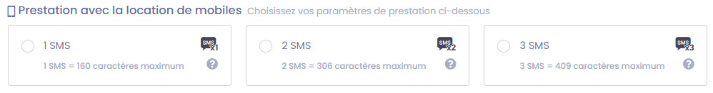 Lorsque vous sélectionnez la location de mobiles à usage SMS, vous pouvez choisir la longueur du message que vous souhaitez adresser :