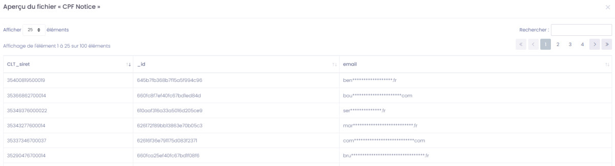 Une fois le test lancé, un échantillon anonymisé des résultats sera affiché, comme dans l'exemple ci-dessous :