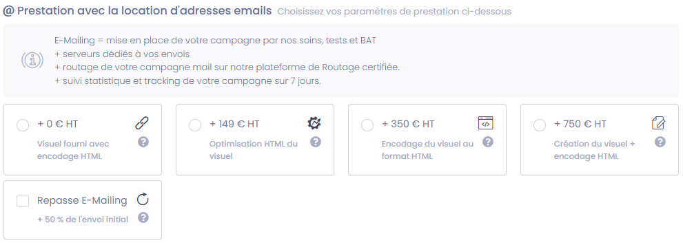 Prestation avec la location d'adresses emails
