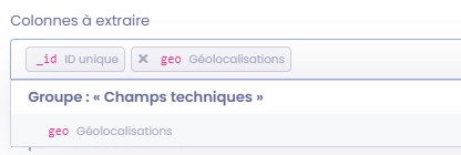 Pour cela, vous devez ajouter le champ "geo" dans la liste des colonnes à extraire. Ce champ contiendra à minima le N° de la zone ciblée lors du comptage, ainsi que la référence personnalisée que vous avez inséré entre parenthèse le cas échéant.