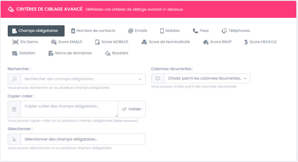 Cet encart vous permet d'ajouter des critères complémentaires à votre enrichissement.