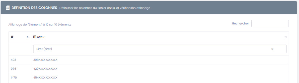 Définition des colonnes du fichier