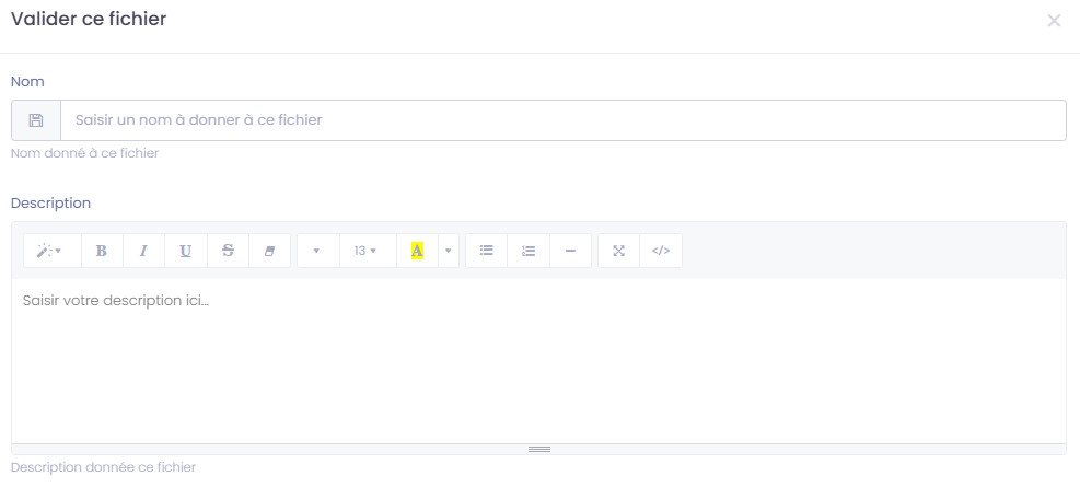 Une fois votre enrichissement validé, une fenêtre s'ouvre, vous permettant de saisir un Nom et une référence associés à cet enrichissement, pour retrouver ce traitement ultérieurement dans l'onglet "Fichiers" de votre espace utilisateur.