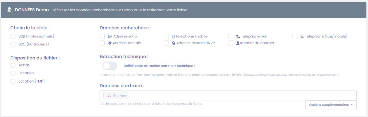 • Le type de contacts à enrichir (B2B ou B2C)