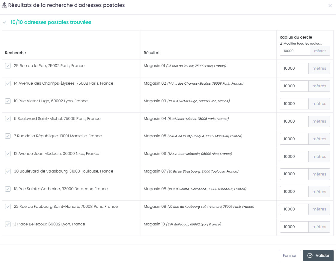 • Codes postaux : permet de cibler par codes postaux
