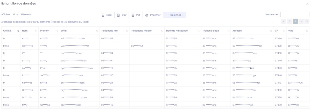 Cette fonctionnalité permet d'effectuer un comptage, un devis, une sauvegarde, et d'extraire des contacts emails / téléphoniques / postaux sur l'ensemble des données B2C disponibles dans les bases intégrées au Webservice.
