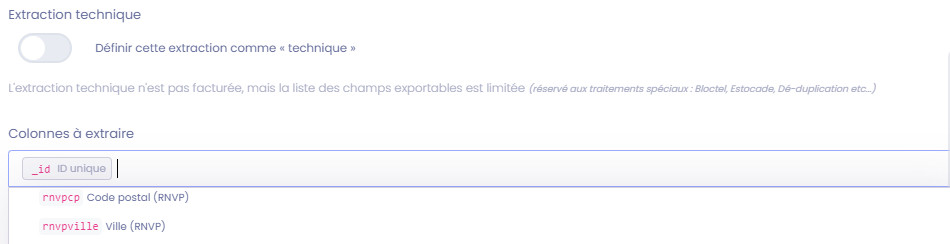 • Priorisation d'extraction : (optionnel) vous pouvez choisir ici les champs qui serviront à prioriser l'extraction (par score RNVP par exemple, score email …).